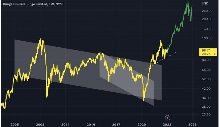 Among the top agricultural equities, Bunge Limited (NYSE: BG) is a strong option because of its considerable influence on the global agribusiness and food processing sectors. As a global corporation that handles the distribution, trading, and processing of agricultural commodities, Bunge is essential to the whole agricultural supply chain. Bunge has made a name for itself in the global supply of necessities for consumers with a wide range of products that include edible oils, milling, and food and animal feed items.