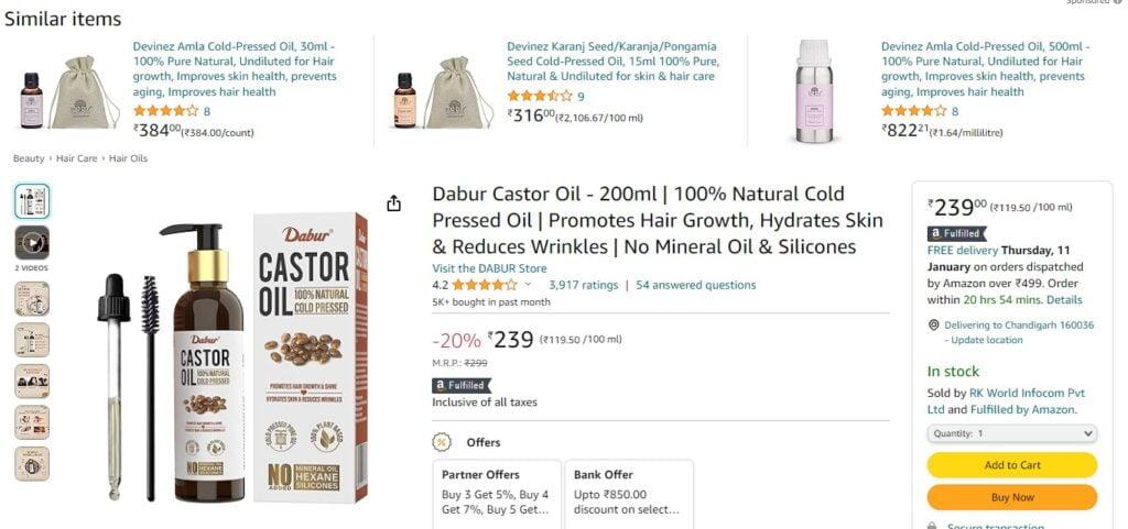 - Dabur Castor Oil – 200ml | 100% Natural Cold Pressed Oil