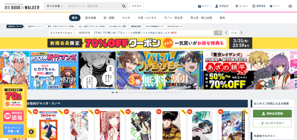 Book Walker supports dozens of publishers, including Yen Press and Kodansha’s Bungou Stray Dogs, and offers free light novels and manga. Most of their content comes at a cost, ranging from variable prices, and the service lacks free content besides the initial purchases.