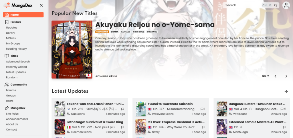 MangaDex is an open-source manga reading platform with thousands of user-uploaded titles, ranging from the popular Bleach series to other lesser-known works. It offers scans and translates different manga, but operates in a legal gray area known as scanlation.