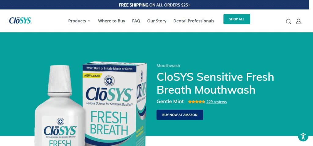 CloSYS Sensitive Mouthwash is an excellent option for individuals seeking relief from bad breath without causing irritation to sensitive mouths. Its gentle, pH-balanced formula is alcohol-free and free from sulfates and triclosan, making it suitable for those with sensitive gums or dry mouth. CloSYS utilizes chlorine dioxide as its active ingredient, which effectively eliminates odor-causing bacteria while being gentle on oral tissues.