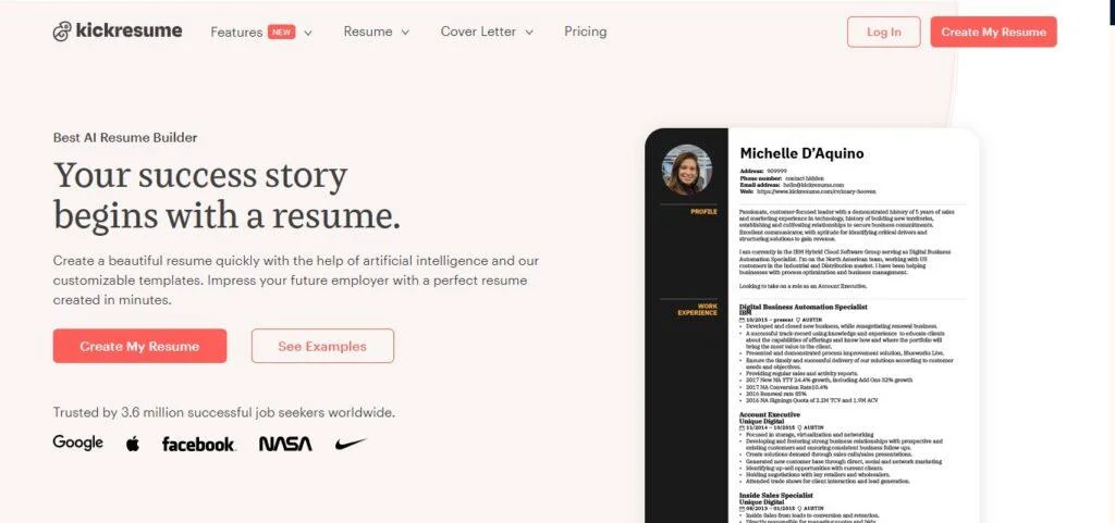 Kickresume, the Best Resume Maker App, you can fully immerse yourself in the realm of modern and efficient resume development. Kickresume distinguishes itself with an easy-to-use platform that provides a streamlined and simple experience while creating professional resumes. With the app’s wide selection of contemporary, editable templates, users can add a personal touch to their resumes without sacrificing a clean, businesslike appearance. Beyond just being visually appealing, Kickresume ensures that users properly present their talents and accomplishments by offering expert coaching and dynamic content ideas.