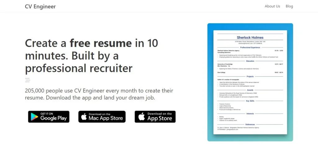 CV Engineer—the Best Resume Maker App—you can reinvent resume writing and elevate your professional profile while also embracing the future of resume development. With our app, you can quickly and easily create a resume that stands out in only a few minutes. We put speed and simplicity first. With its selection of industry-specific templates, CV Engineer makes sure that your resume meets all the requirements of the field you want to work in. You may easily navigate through each aspect of the programme with its user-friendly interface, which provides helpful hints to showcase your experiences, abilities, and successes.