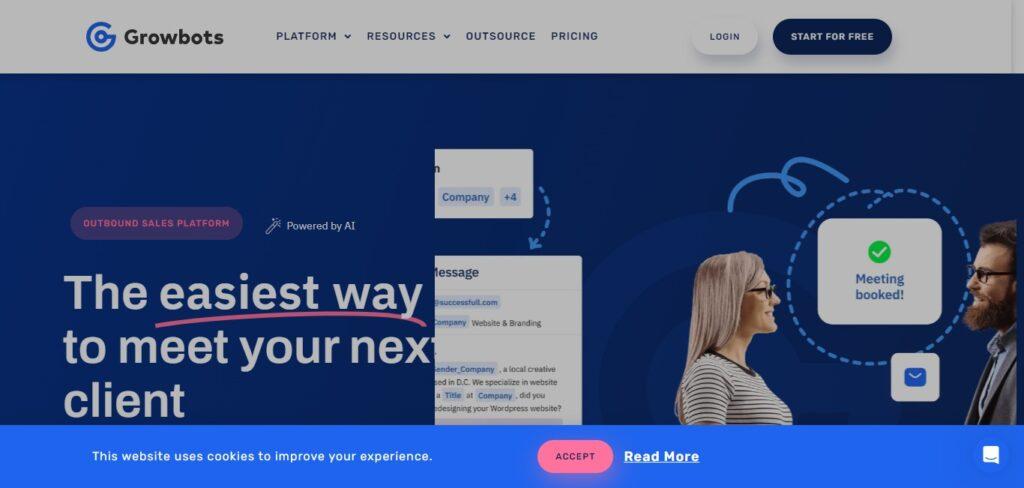 With a wide range of tools to improve your sales game, Growbots stands out as one of the top platforms for sales interaction. Growbots is unique in that it streamlines the sales process while maintaining a human touch thanks to its potent automation and personalization combo. The AI-driven features of the platform assist in locating and focusing on the relevant leads, maximizing the impact of outreach.