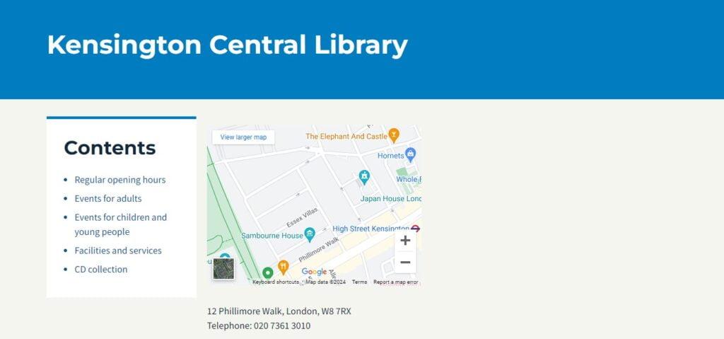 The library’s peaceful areas and well-kept spaces demonstrate its dedication to providing a supportive study environment. Patrons of Kensington Central Library find themselves immersed in a tranquil and intellectually stimulating atmosphere, whether they are engaged in research, reading, or group study sessions. This makes Kensington Central Library an invaluable resource for the academic community in London.