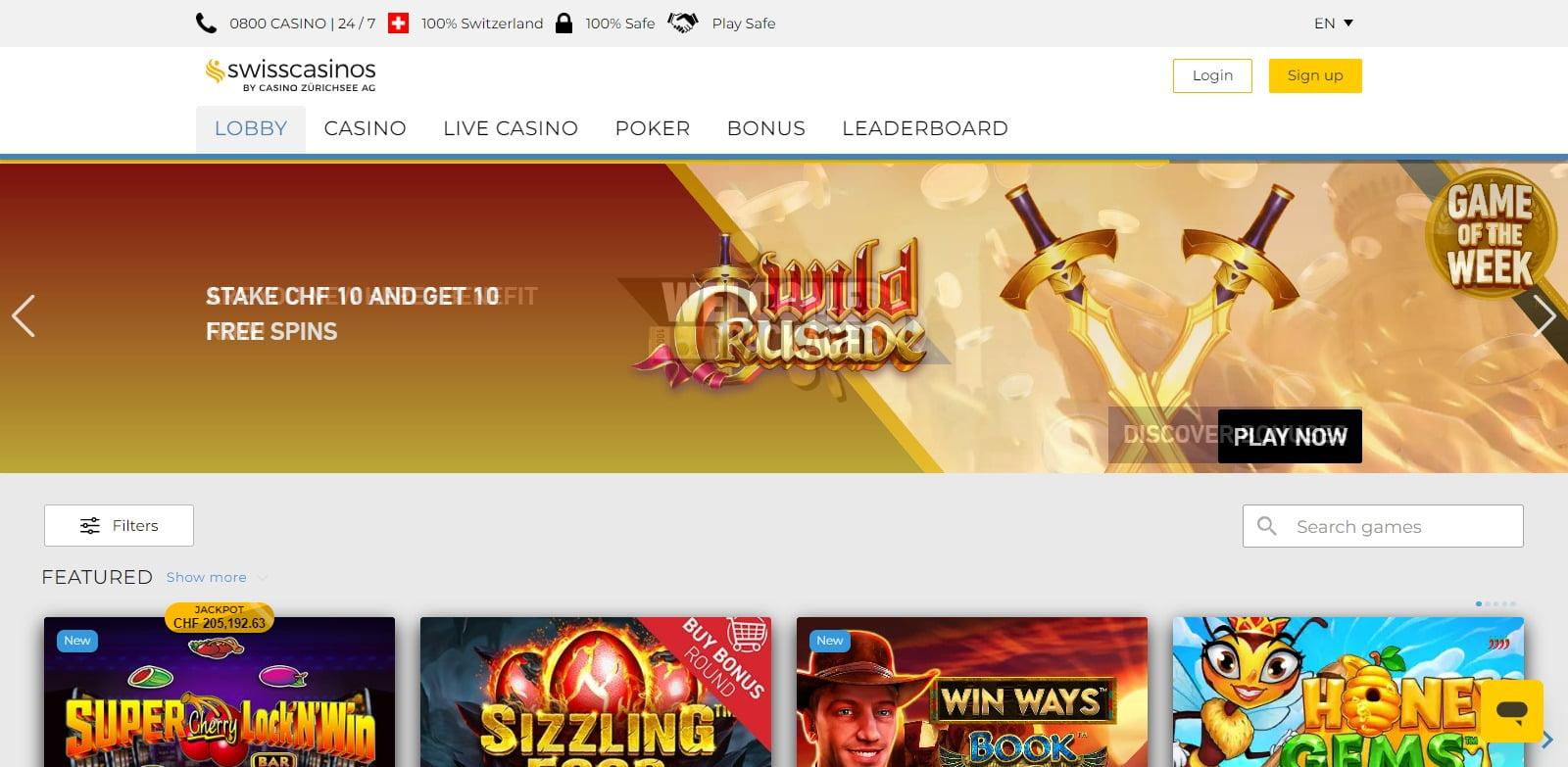 Swiss Casinos stands out with its Swiss Army Knife logo incorporating their country’s flag. However, it must be said that Swiss Casinos isn’t exactly cutting edge when it comes to design: their narrow desktop site’s narrow design and small text may make you nostalgic of a different time era;