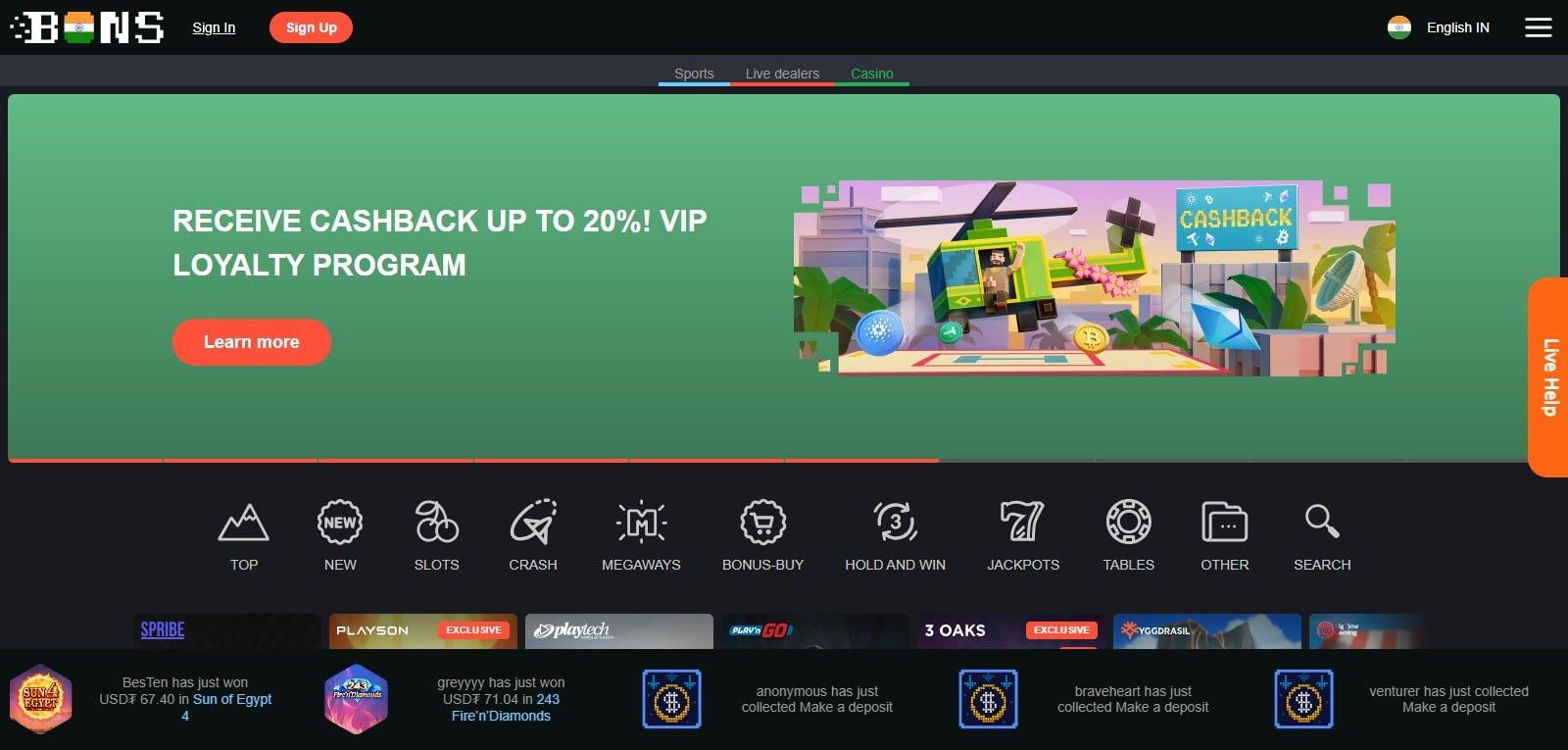 BONS Casino is recognized for its excellence in both crypto casino gaming and sports betting. It caters not only to Indian players but also to a global audience.