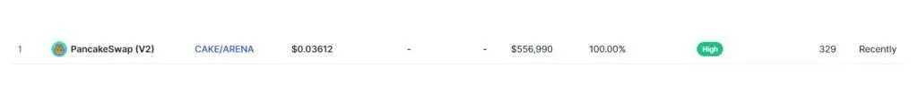 Tokens Can Be Purchased On Most Exchanges. One Choice To Trade Is On PancakeSwap (V2), As It Has The Highest CAKE/ARENA. e Trading Volume, $8,947 As Of February 2021. Next is OKEx, With A Trading Volume Of $6,180,82. Other option To Trade Include CAKE/ARENA And Huobi Global. Of Course, It Is Important To Note That Investing In Cryptocurrency Comes With A Risk, Just Like Any Other Investment Opportunity.