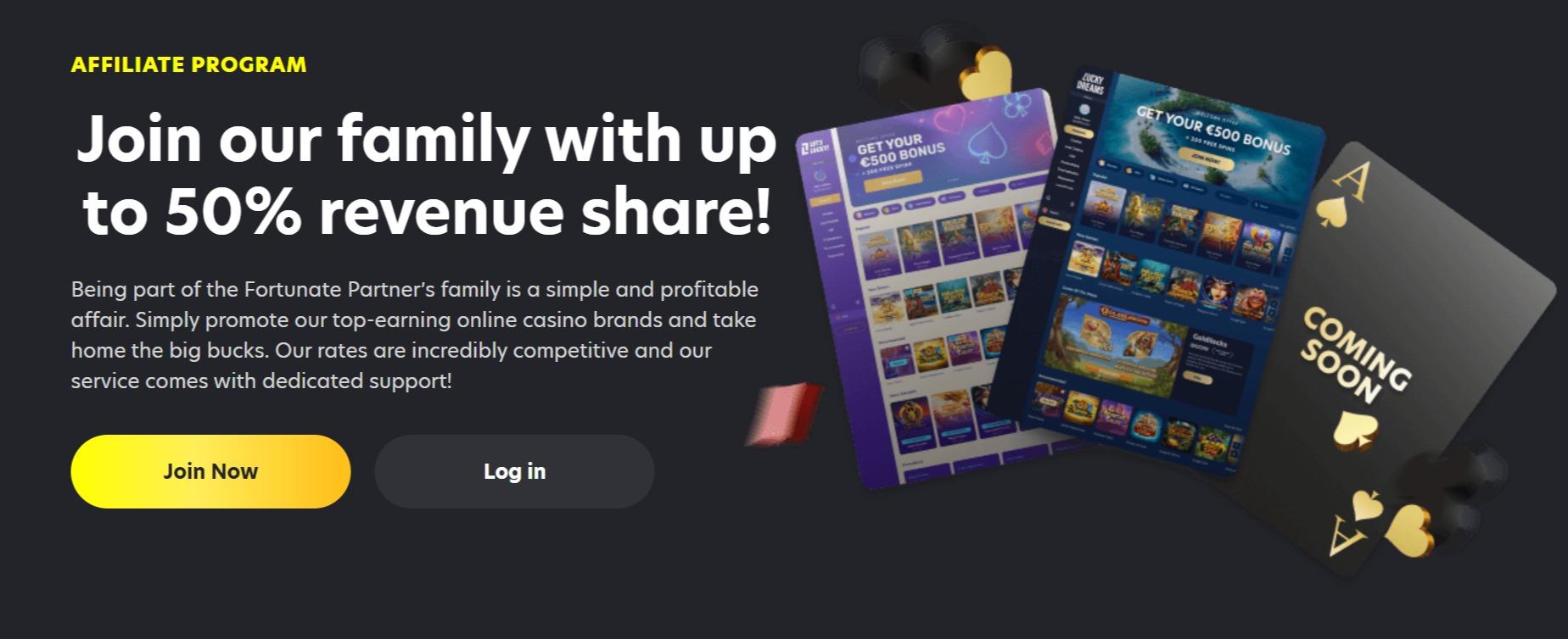 Lucky Dreams Partners is the Affiliate Program for the proprietary brands, LuckyDreams & LetsLucky, with more brands to be added in the future. To open an account, simply click the “Join now” button to start the very simple process of signing up. It’s absolutely free for all participants of the affiliate program. Commission is paid, when commission is earned through your referrals.