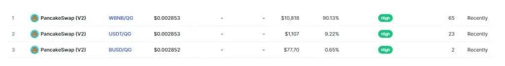 Tokens Can Be Purchased On Most Exchanges. One Choice To Trade Is On PancakeSwap (V2), As It Has The Highest WBNB/QG. e Trading Volume, $8,947 As Of February 2021. Next is OKEx, With A Trading Volume Of $6,180,82. Other option To Trade Include WBNB/QG And Huobi Global. Of Course, It Is Important To Note That Investing In Cryptocurrency Comes With A Risk, Just Like Any Other Investment Opportunity.