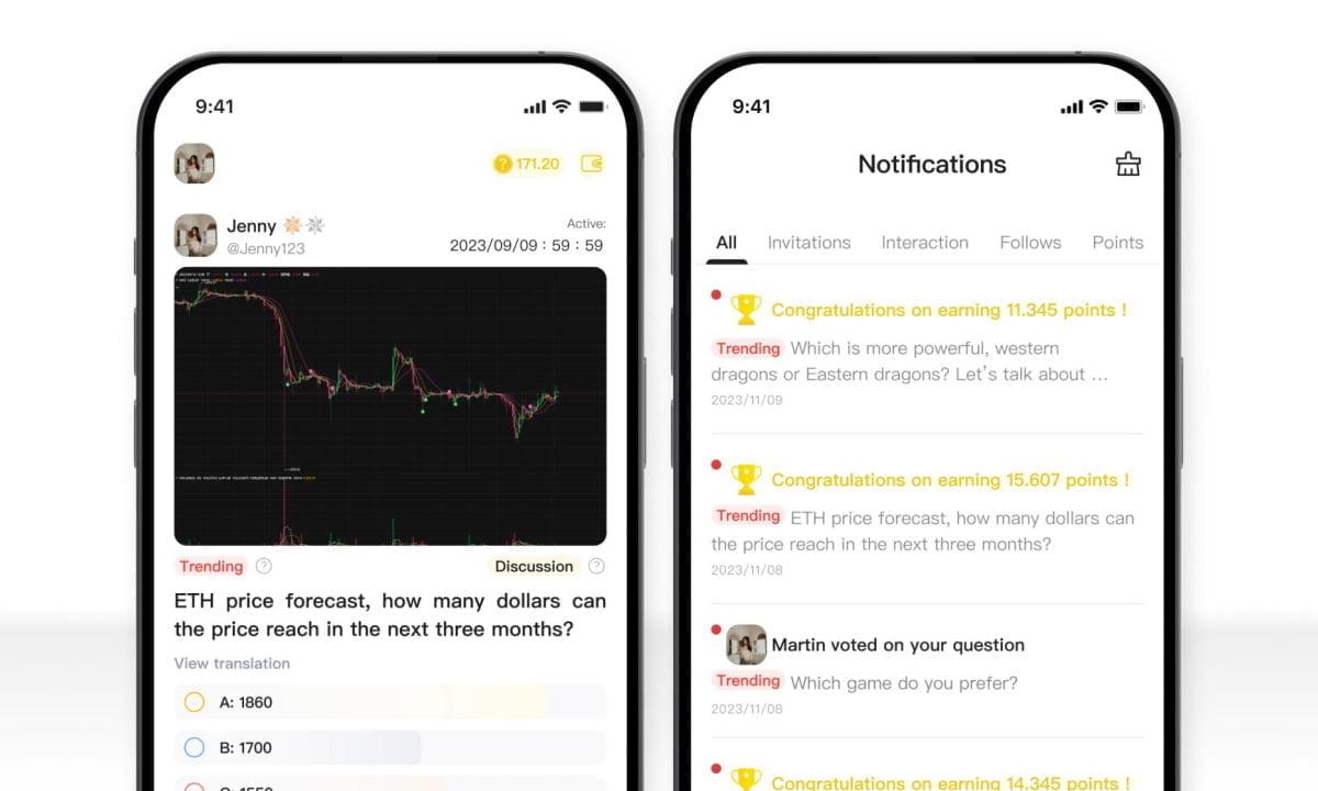Built on the principles of decentralisation and inclusivity, Socrates integrates the benefits of blockchain technology and NFTs to establish a unique incentivised ecosystem. User interactions contribute to a question’s prize pool, already reaching over 1000 points, with potential rewards distributed upon the question’s closure. Meaningful discussions and unique perspectives during deep debates can earn users higher rewards, a key feature in provoking meaningful discussions and new levels of engagement.