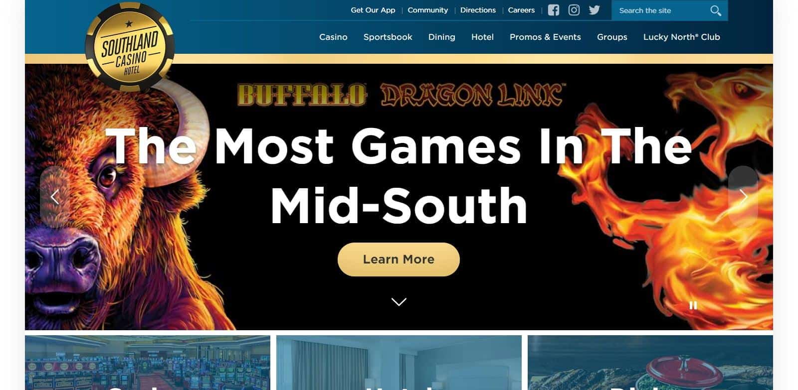 Southland Casino Hotel stands as an oasis for gaming enthusiasts, sports bettors and food lovers in the Mid-South region. Open around-the-clock every weekday ensuring an inexhaustible stream of excitement and entertainment for visitors alike. Southland Casino Hotel provides the thrill of gaming, the thrill of sports betting, fine dining and unforgettable memories all under one roof.