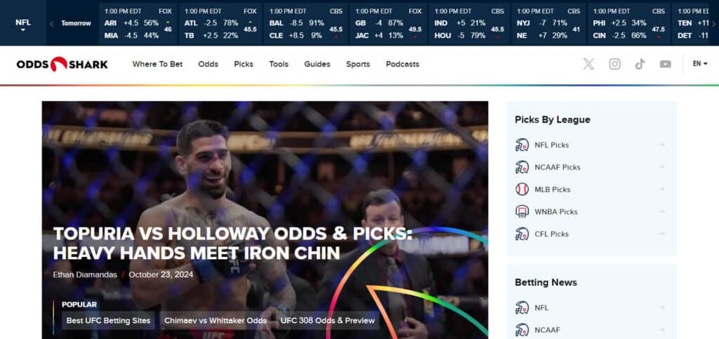 | Odds Shark | Comprehensive odds and stats resource for sports betting; provides expert analysis on major events. |